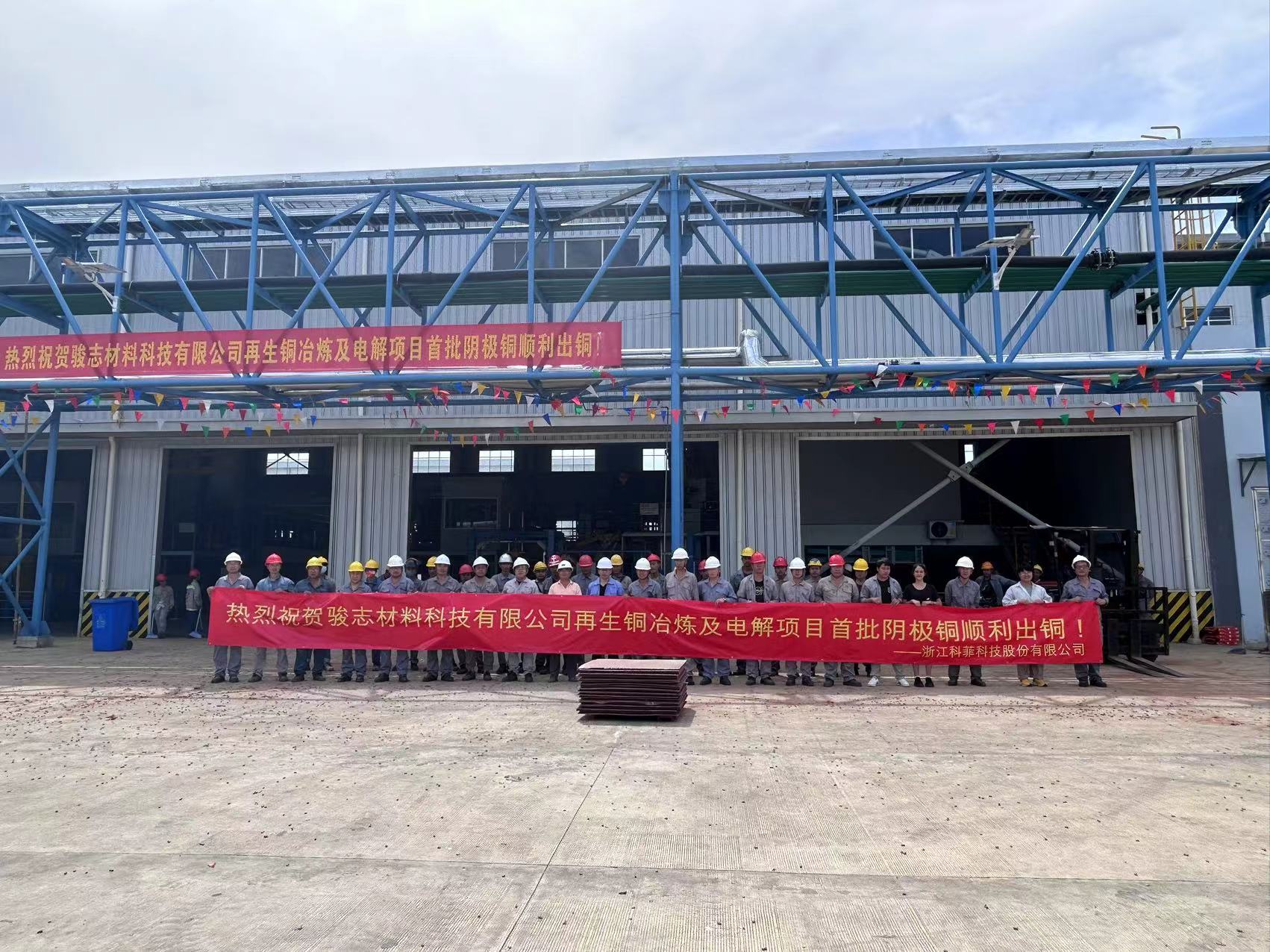 • 熱烈祝賀泰國(guó)駿志材料科技有限公司再生銅項(xiàng)目首批陰極銅順利出銅!